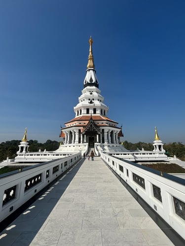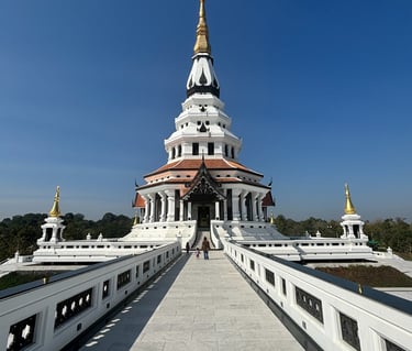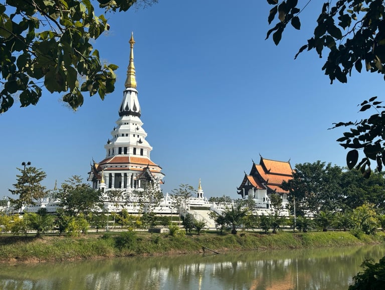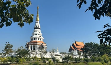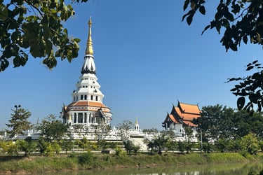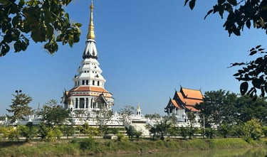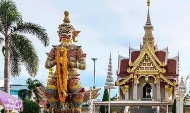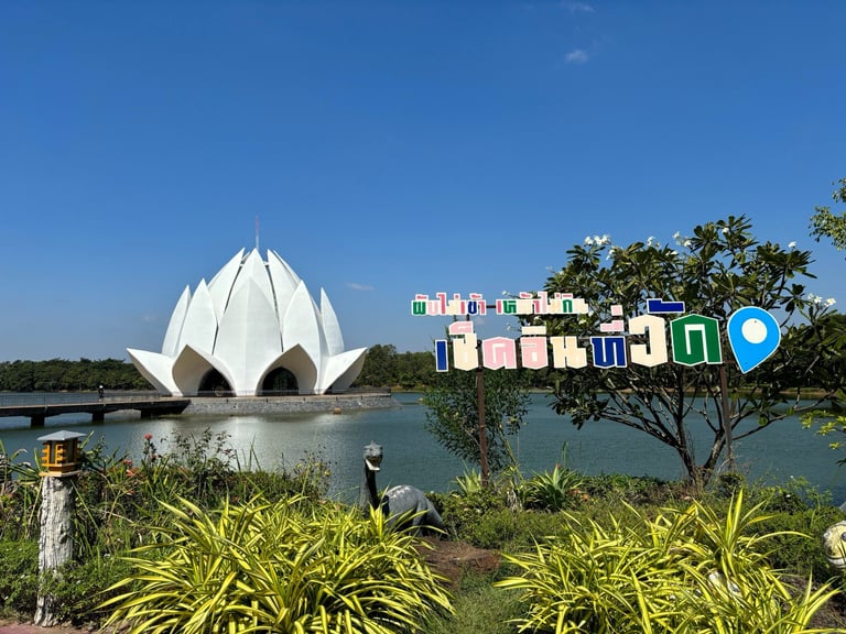 Sur le chemin du retour, nous irons au Centre International de Méditation avec son lieu de pèlerinage : le fascinant WAT SANTIWANARAM, surnommé le "temple fleur de lotus".