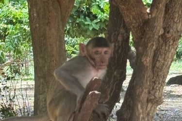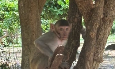 Sur le retour, nous ferons la rencontre insolite des singes sauvages aux abords de la ville de KUMPHAWAPI.