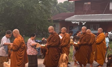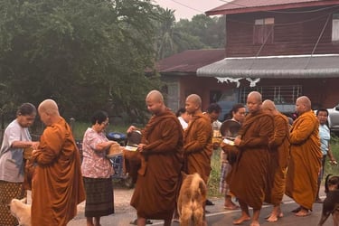 « l’offrande matinale de nourriture aux moines bouddhistes ».