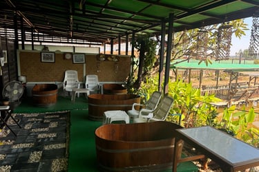 La fin d'après-midi sera un temps libre dans un lieu dépaysant avec piscine, bar, ...