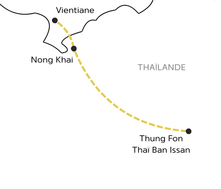 Puis, nous partirons pour la ville frontalière de Nong Khai. Vous pourrez apprécier le Skywalk qui donne une vue imprenable sur le MEKONG.