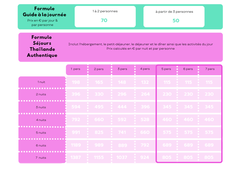 → Formule séjours Thaïlande Authentique : pour les familles à partir de 2 enfants, nous offrons - 25 % pour chaque enfant de 7 à 12 ans et - 50% pour chaque enfant de 3 à 6 ans.